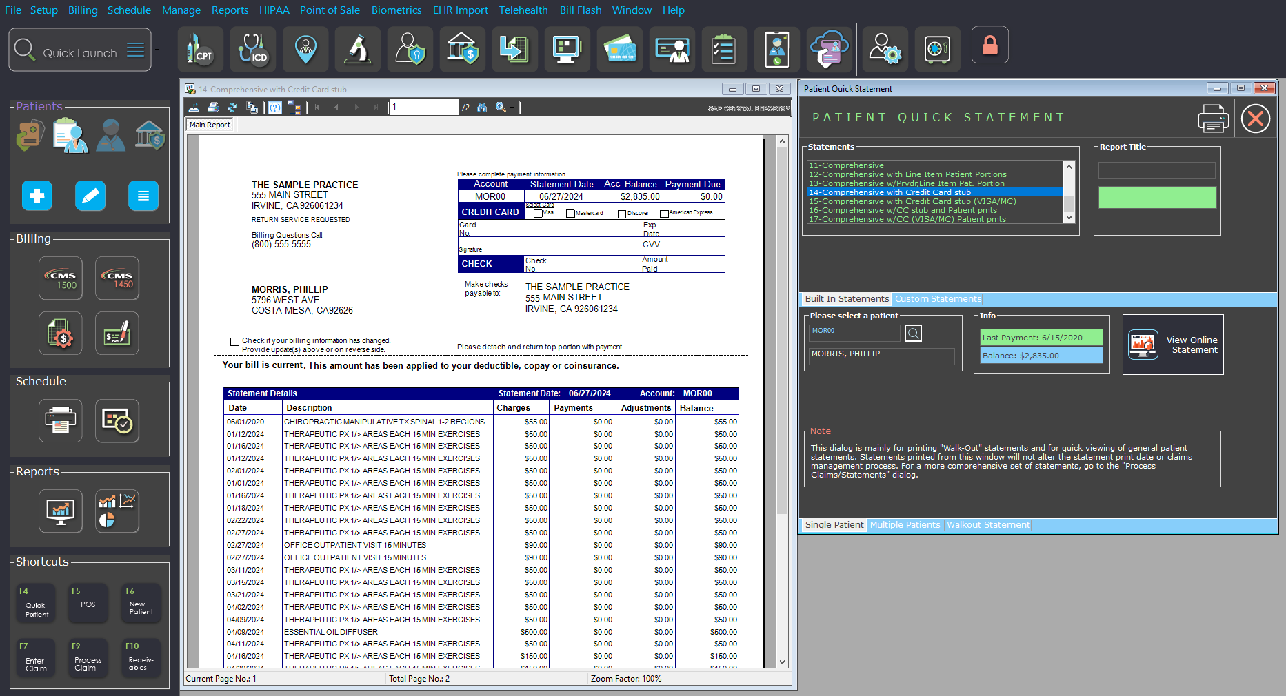 Modern, powerful, feature-rich, and inexpensive Medical Practice Management system to manage the entire revenue cycle. Our intuitive system is easy to learn with stunning graphics. You can access it the way you like; local download on-premises or hosted on our cloud.